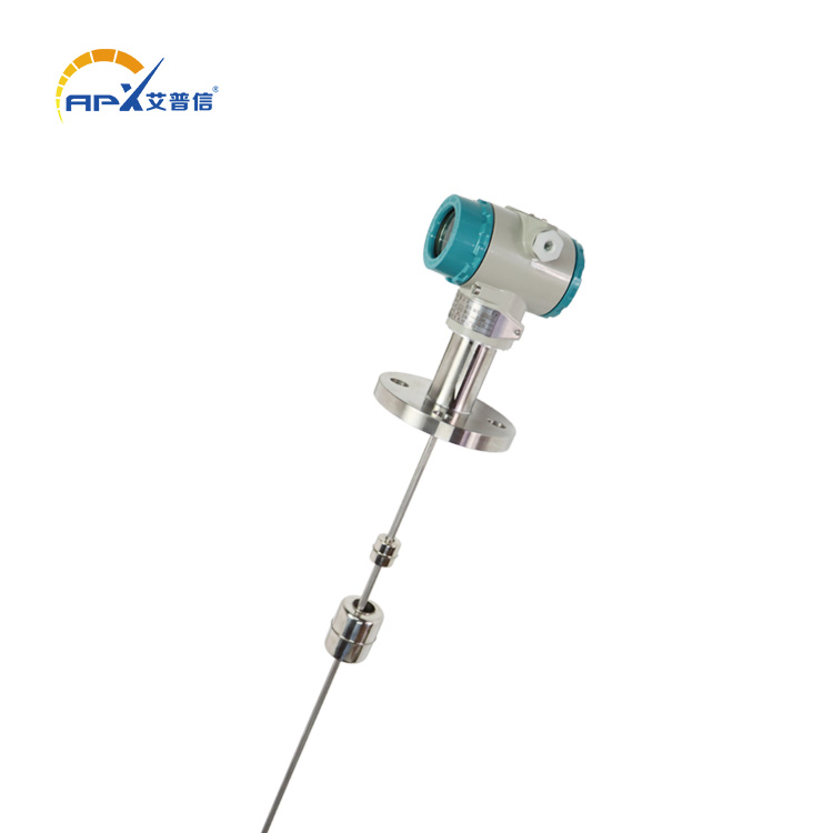 測量原理:傳感器工作時,電路部分將在波導絲上激勵出脈沖電流,該電流沿波導絲傳播時會在波導絲的周圍產生脈沖電磁場。在傳感器測桿外配有一浮子,此浮子可沿測桿隨液位的變化而上下移動。在浮子內部有一組永久磁環。當脈沖電流磁場與浮子產生的磁環磁場相遇時,浮子周圍的磁場發生改變從而使得由磁致伸縮材料做成的波導絲在浮子所在的位置產生一個扭轉波脈沖,這個脈沖以固定的速度沿波導絲傳回并由檢出機構檢出。通過測量脈沖電流與扭轉波的時間差可以精確地確定浮子所在的位置,即液面的位置。