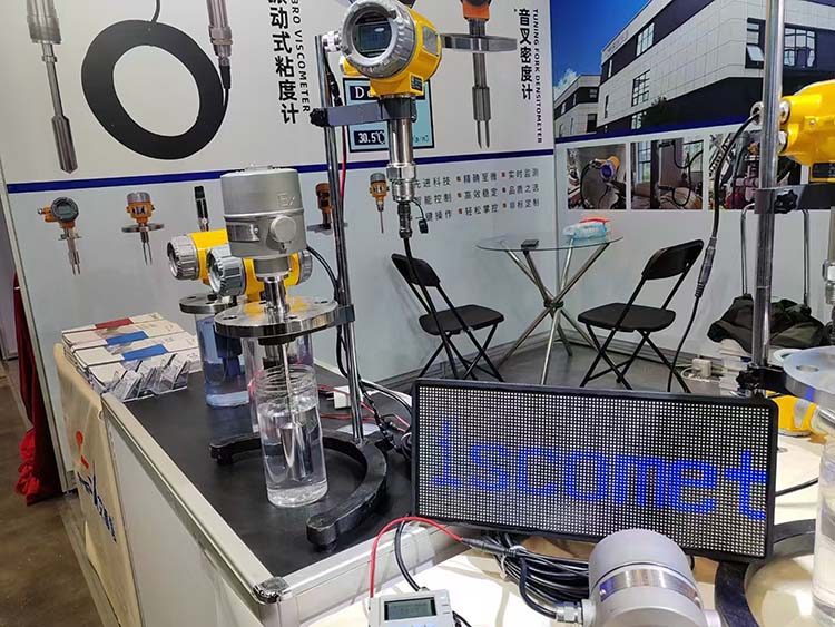 展會中工作人員向前來咨詢的朋友演示了在線密度的使用方法,講解了其工作原理以及行業應用案例。產品在生產中嚴格按照國家標準執行,注重細節,產品質量與國際品牌相媲美。另一款在線粘度計彰顯了工業自動化粘度測量的作用性,可實時監測液體不同溫度下的粘度,無需中斷生產過程就可以獲取數據。不受流速和汽泡的干擾,耐高溫高壓設計可以在各種復雜環境下使用,操作簡便,只需設置好參數即可進行實時監測。現場模擬測試中讓前來參觀的朋友親眼見證了我們這款粘度計的精準度和穩定性能。產品應用廣泛,可用應用于石油、煉化、聚氨樹脂、熱熔膠、擠塑機、造紙、船舶、食品、油漆、有機硅、高分子材料等行業。為工業生產解決了自動化在線粘度測量難題,深受大家的一致好評。