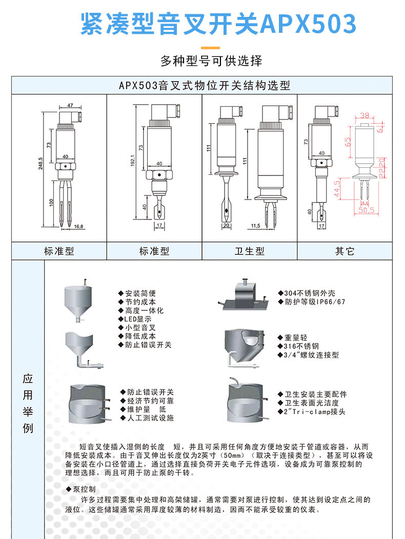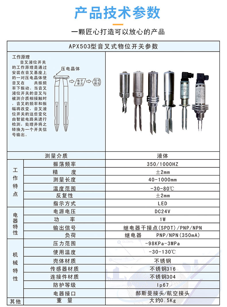 本產品是一種基于振動短音叉技術的液位開關。它是一種緊湊開關,配備耐用的不銹鋼本體和音叉,可用于各種液體應用場合。