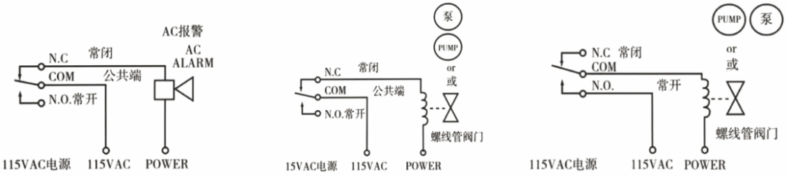 繼電器輸出觸點(diǎn)是 ?C型,2組單刀雙擲,10A,115VA.C,阻抗。輕型低電感負(fù)載可用于螺線(xiàn)管式閥門(mén)或報(bào)警。重型電感負(fù)載必須通過(guò)中間繼電器來(lái)帶動(dòng)。詳細(xì)數(shù)據(jù)見(jiàn)技術(shù)說(shuō)明部分繼電器的觸點(diǎn)。