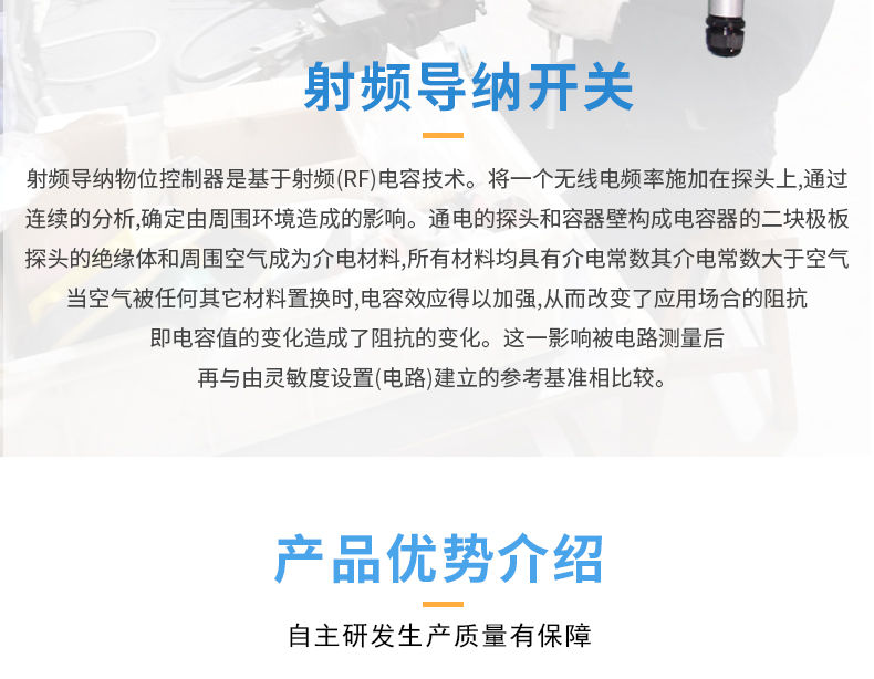 射頻導納開關是一種高智能料位測量產品,它克服了以往測量方式的報警精度低和調校步驟復雜給客戶帶來的不便,該液位開關廣泛應用于,化工冶金石油機械食品電廠出廠食料等行業。