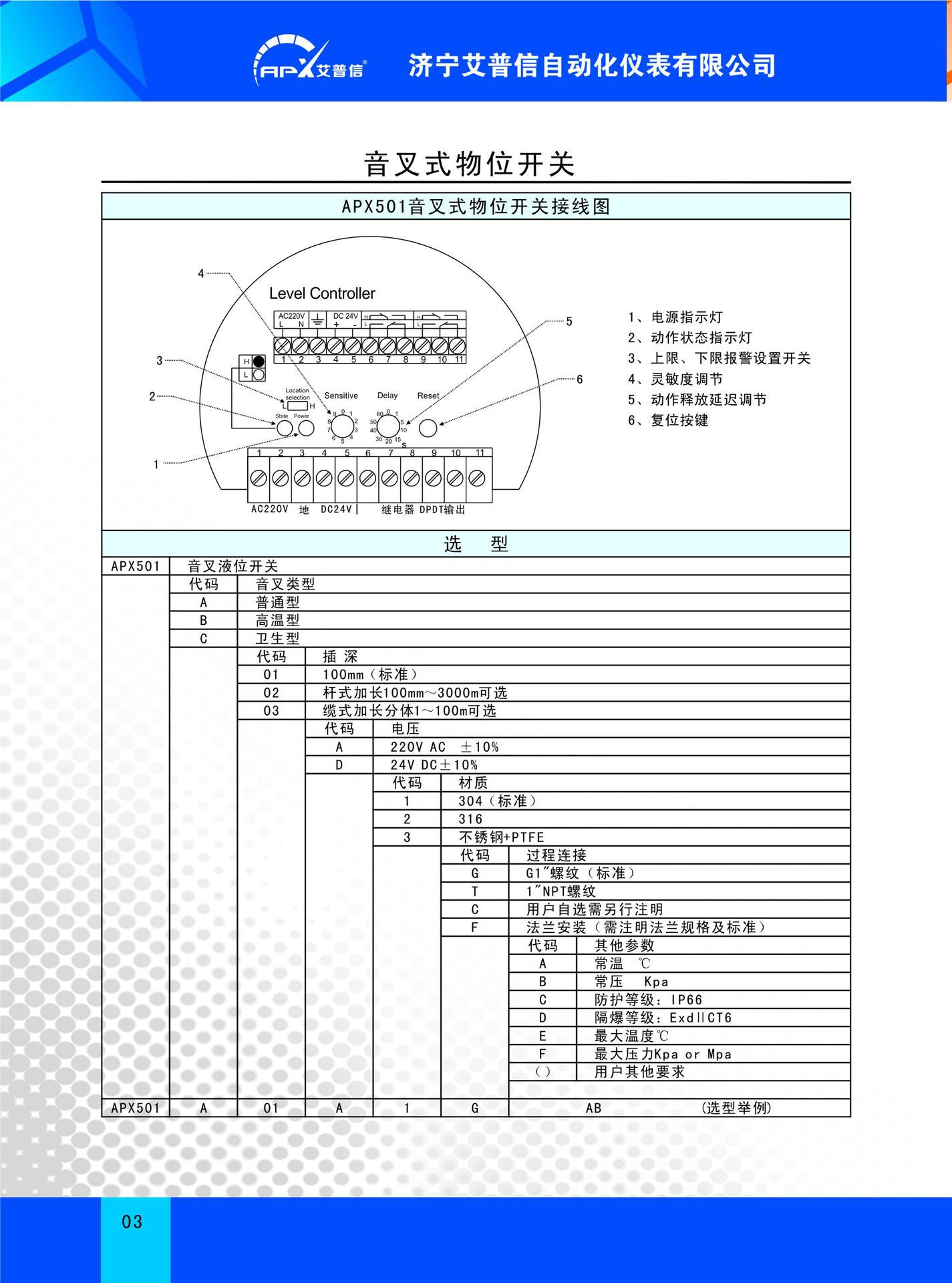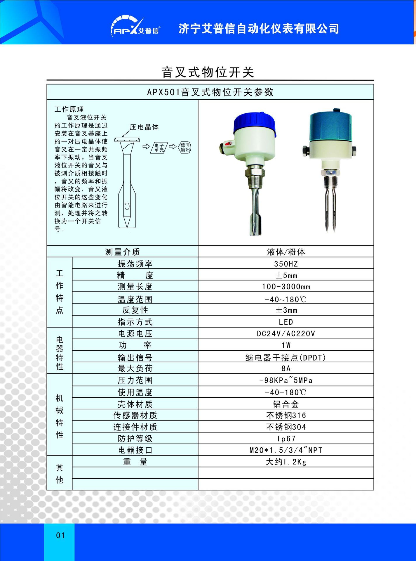 ?該產(chǎn)品可以對料罐的高低位進行檢測、控制和報警,適用于各種液體、粉末、顆粒狀固體。它實用簡單、運行可靠、適用性強基本上是免維護的、音叉和輸出均有工作狀態(tài),均用發(fā)光二極管指示,可依據(jù)習慣調(diào)整狀態(tài)指示,并配有三種輸入方式(直流24V、交流110V和交流220V)和多種輸出方式(直流電流輸出型、繼電器接點輸出型、直流電壓輸出型)。所有類型均有高或低故障報警模式和可選擇的儀表開關(guān)靈敏度。